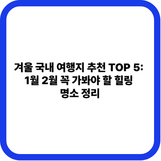 추운 날씨일수록 더욱 빛을 발하는 국내 겨울 여행지의 매력! 눈 덮인 설경부터 따뜻한 온천 힐링까지, 2025년 겨울을 특별하게 만들어줄 국내 겨울 여행지 추천 TOP 5를 소개합니다.