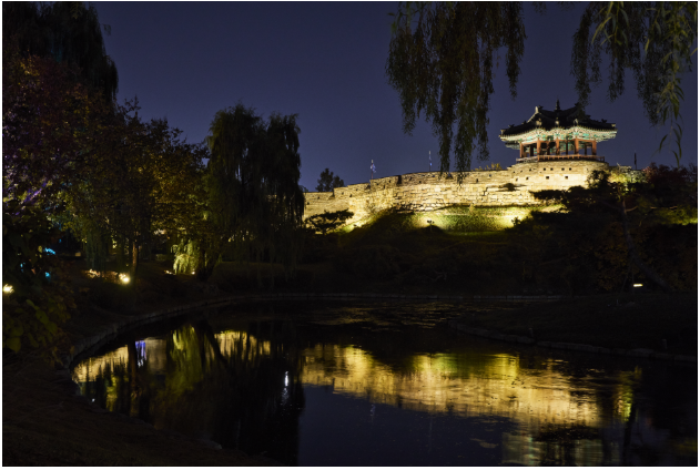 유네스코 세계유산으로 지정된 수원화성은 과거와 현재가 공존하는 도심 속 야경 명소입니다. 정조대왕의 꿈이 담긴 성곽을 따라 걷다 보면 은은하게 빛나는 조명이 고풍스러운 멋을 더해줍니다.
