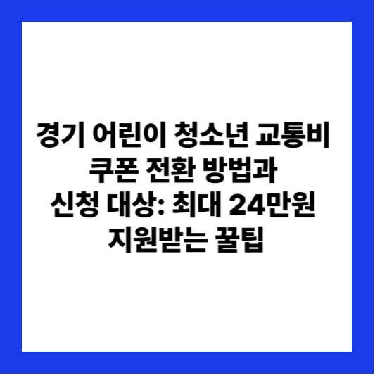 이러한 개선을 통해 경기도 어린이와 청소년들은 대중교통을 더욱 편리하고 부담 없이 이용할 수 있게 되었으며, **지역화폐 교통비 전환**이라는 실질적인 혜택을 누릴 수 있게 되었습니다. 지금 바로 **경기도 어린이 청소년 교통비 지원 홈페이지**를 방문하여 혜택을 확인하세요!