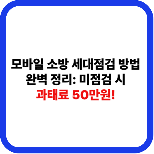 **최종 요약:** **모바일 소방 세대점검 방법**을 숙지하고, **소방청 앱**으로 간단히 의무를 이행하여 **과태료 50만원**을 피하고 안전한 주거 환경을 지키시길 바랍니다.