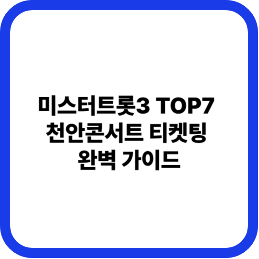 뜨거운 성원에 힘입어, **〈미스터트롯3〉 TOP7 천안콘서트**가 한층 업그레이드된 무대로 천안예술의전당 대공연장을 찾아옵니다. 지난 투어에서 보여준 폭발적인 감동을 넘어, TOP7 멤버들이 더욱 강력해진 라이브 퍼포먼스와 짙어진 매력을 선보일 예정입니다. **김용빈, 손빈아, 천록담, 춘길, 최재명, 남승민, 추혁진** 등 심장을 울리는 목소리의 주인공들이 무대 위를 가득 채우며 관객의 열정을 깨울 준비를 마쳤습니다. 2026년 새해를 트롯의 뜨거운 에너지로 시작할 이번 콘서트의 성공적인 티켓팅을 위해 공연 시간, 가격, 예매 오픈 일정을 상세히 확인하세요!