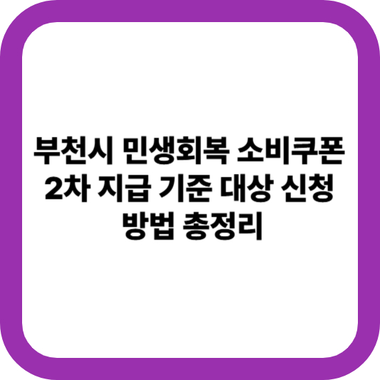 부천시 민생회복 소비쿠폰 2차 지급이 시작되면서 많은 분들이 신청 방법과 대상 기준을 궁금해하고 계실 텐데요. 복잡한 신청 절차와 까다로운 자격 요건 때문에 놓치기 쉬운 숨겨진 팁들까지 모두 담은 완벽 가이드를 준비했습니다. 이 글만 읽으면 헷갈리지 않고 한 번에 신청 완료할 수 있어요!