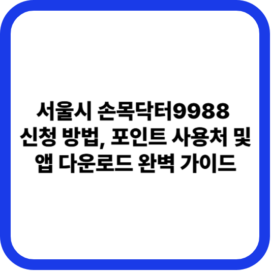 아직 신청하지 않으셨나요? 지금 바로 **손목닥터9988 신청 방법**부터 **포인트 적립 꿀팁**, 그리고 **사용처**까지 A to Z로 정리해 드립니다. 건강한 습관과 쏠쏠한 혜택, 두 마리 토끼를 모두 잡아보세요!