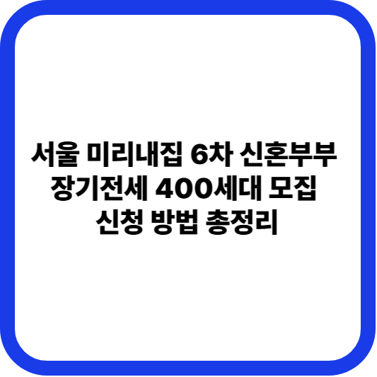 서울시민의 주거 안정을 책임지는 서울주택도시공사(SH)에서 신혼부부의 주거 부담 완화를 위한 **장기전세임대주택 '미리내집' 제6차 입주자**를 모집합니다. 총 400세대 규모로 서울 전역 71개 단지에서 진행되는 이번 공고는 신혼부부에게 장기간 안정적인 거주 환경을 제공하는 중요한 기회입니다.
