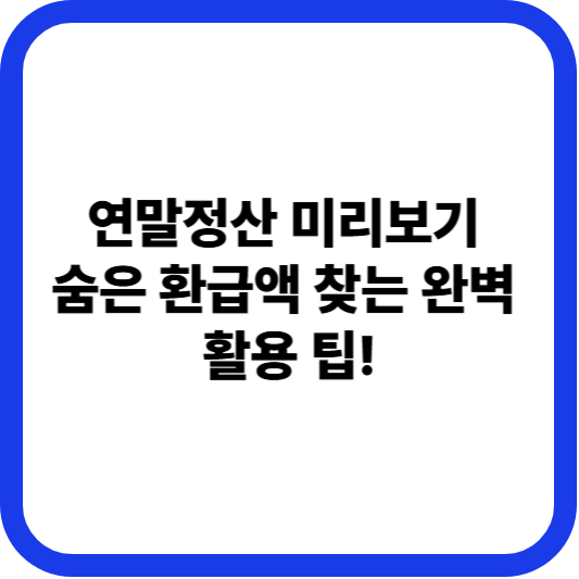 잊지 마세요! 미리보기를 통해 세금 폭탄을 피해가고, 놓친 공제 항목을 꼼꼼하게 챙겨서 이번 겨울에는 꼭! 넉넉한 **환급금** 챙기시길 응원합니다! 💰