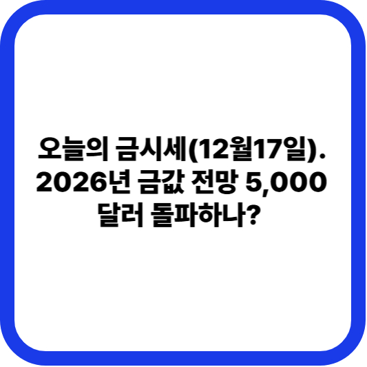 2025년 12월 17일 기준의 금 시세 및 시장 동향 분석, 특히 2026년 금 가격이 온스당 5,000달러까지 급등할 수 있다는 강력한 장기 전망을 제시합니다. 단기 하락세 속 숨겨진 장기 상승 동력을 자세히 분석하여 알려드리겠습니다.