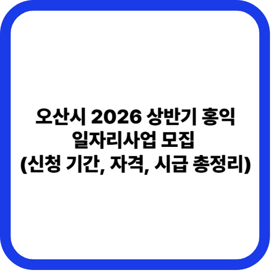 오산시가 장기실업 등 일자리 지원이 필요한 **취업취약계층**의 생계 안정과 지역 경제 회복을 위해 **「2026년 상반기 홍익일자리사업」** 참여자를 모집합니다. 해당 공공일자리에 관심 있는 오산 시민은 아래 내용을 확인하시고 기한 내 신청하시기 바랍니다.