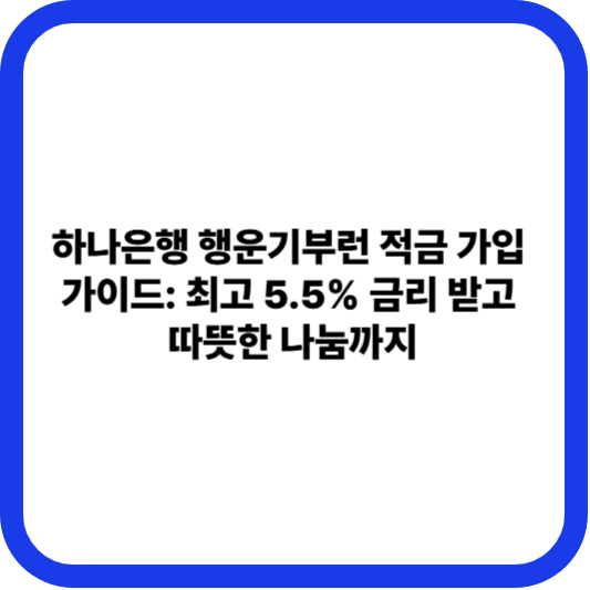 저금리 시대에 높은 수익률과 사회적 가치를 동시에 챙길 수 있는 금융 상품이 주목받고 있습니다. 하나은행에서 출시한 ‘행운기부런 적금’은 적금 만기 시 소정의 금액을 기부하면 우대 금리를 제공하는 매력적인 상품입니다.