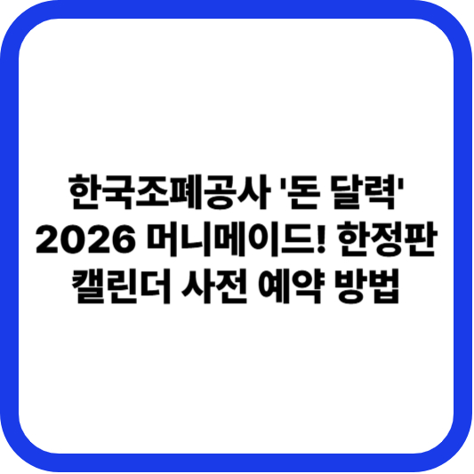 대박 소식! 🤩 매년 출시될 때마다 광클 전쟁을 일으켰던 바로 그 달력! 한국조폐공사에서 만든 2026년 머니메이드 달력, 일명 **'돈 달력'**의 사전 예약 판매가 드디어 시작됩니다! 예전엔 기관 홍보용으로만 배포되던 걸, 이제 우리 같은 일반 소비자도 살 수 있게 됐다는 거 있죠? 💖 돈 들어오는 기운을 팍팍 받는다는 이 특별한 달력, 놓치지 않도록 제가 구매 꿀팁부터 제품 정보까지 싹 다 정리해 드릴게요!