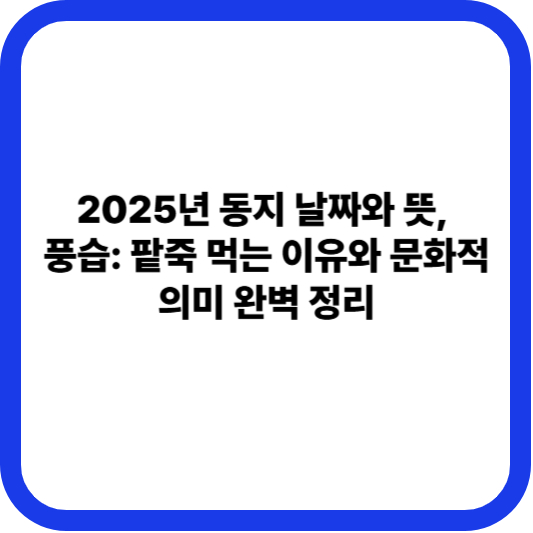 1. 📅 동지의 뜻과 2025년 동지 날짜