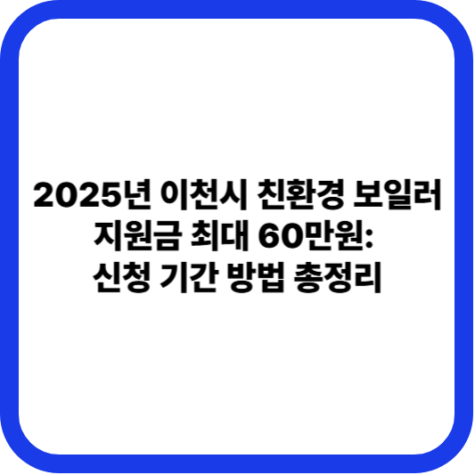 난방비 부담을 줄이고 깨끗한 공기를 만드는 **친환경 보일러** 교체 지원 사업이 2025년 연말을 앞두고 마감을 앞두고 있습니다. 이천시와 경기도가 함께 추진하는 이번 사업은 특히 기후 위기에 취약한 계층의 겨울나기를 돕기 위해 마련되었으며, 1대당 **최대 60만원**의 보조금을 지원합니다. 지원은 **선착순**으로 진행되며, **보조금 예산 소진 시 조기 마감**될 수 있습니다. 교체를 계획 중이라면 서둘러 신청해야 합니다.