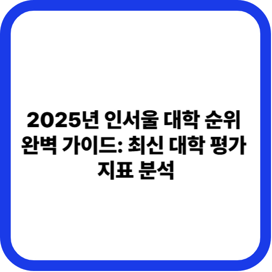 대학 입시를 준비하는 수험생들에게 '인서울'은 단순한 위치를 넘어 교육 환경과 향후 취업 경쟁력을 결정짓는 중요한 지표입니다. 2025년 발표된 국내외 대학 평가 순위와 실제 수험생들의 선호도를 종합하여 최신 인서울 대학 순위를 정리해 드립니다.