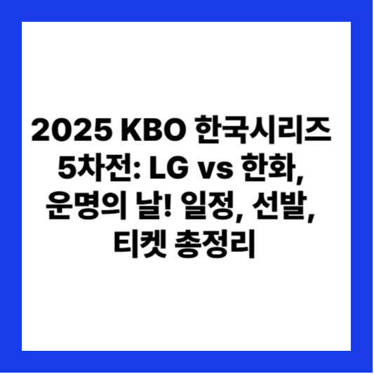 2025 한국시리즈의 향방을 가를 운명의 5차전, 드디어 확정된 경기 정보와 티켓 예매 방법을 상세히 안내합니다. 현재 LG 트윈스가 시리즈 전적 3승 1패로 앞서나가며 우승에 단 1승만을 남겨둔 상황입니다. 벼랑 끝에 몰린 한화 이글스의 홈 구장에서 펼쳐질 이 역사적인 경기의 모든 것을 확인하세요!