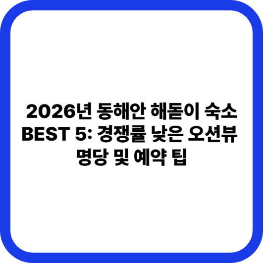 2026년 새해 일출을 보기 위해 추운 새벽 바닷바람을 맞을 필요가 없습니다. 동해안의 오션뷰 숙소는 따뜻한 객실이나 전용 발코니에서 낭만적인 해돋이를 감상할 수 있는 최고의 명당입니다. 특히 연말 성수기는 예약 경쟁이 치열하므로, 경쟁률이 상대적으로 낮은 숨겨진 명소의 숙소 5곳과 필수 예약 팁을 통해 성공적인 새해 첫날을 준비하세요.