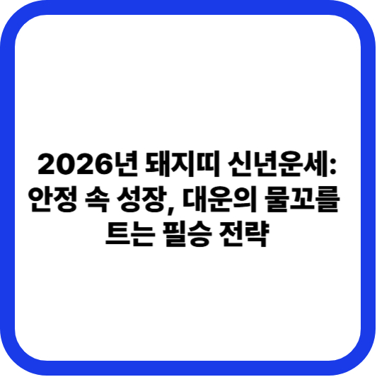 2026년 병오년(丙午年)은 돼지띠에게 비교적 안정적이고 발전적인 기운이 강한 해입니다. 이전 해의 노력이 결실을 맺기 시작하며, 특히 귀인(貴人)의 도움으로 막혔던 일이 순조롭게 해결되는 운입니다.