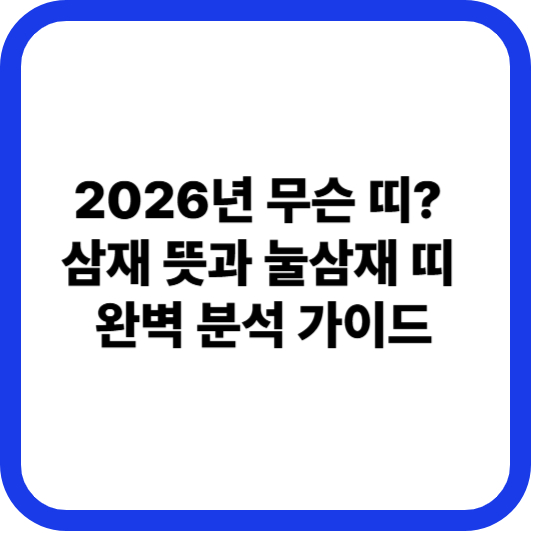 새로운 한 해, 2026년이 다가오면서 자신의 운세와 길흉화복에 관심을 가지는 분들이 많습니다. 특히 12년 주기마다 찾아오는 **삼재(三災)**는 많은 사람의 주요 관심사인데요. 2026년은 무슨 띠이며, 어떤 띠들이 삼재의 영향을 받는지, 그리고 그 의미는 무엇인지 자세히 알아보겠습니다. 이 가이드를 통해 미리 대비하고 현명하게 한 해를 계획하시길 바랍니다.