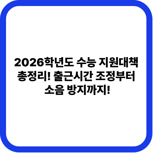 매년 11월, 우리 모두가 한마음으로 응원하는 '대학수학능력시험' 날이 다가옵니다! 수험생들이 최고의 실력을 발휘할 수 있도록 교육부가 '2026학년도 수능 지원대책'을 발표했어요. 시험 당일 교통 혼잡을 줄이고 소음을 완벽하게 차단하는 등 아주 적극적인 대책이 마련되었는데요, 수험생은 물론 일반 국민 모두에게 적용되는 지원대책을 지금 바로 확인해 보세요! 👇