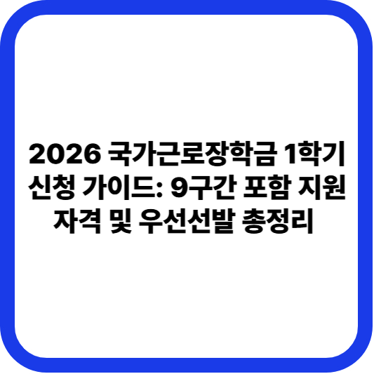 2026학년도 1학기 국가근로장학금 신청 일정이 확정되었습니다. 국가근로장학금은 학비 부담을 줄이는 동시에 다양한 직업 체험 기회를 제공합니다. **학자금 지원 9구간 이하** 학생을 대상으로 하며, 직전 학기 성적 **C0 수준(70점 이상)** 이상을 충족해야 합니다.