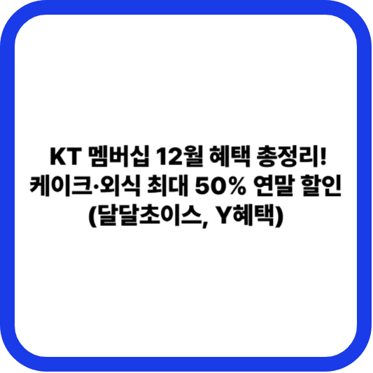 KT 고객이라면 주목해야 할 12월 멤버십 혜택이 공개되었습니다. 포인트 한도 폐지로 부담 없이 모든 혜택을 누릴 수 있는 이번 프로모션은 케이크, 외식, 배달, 영화, 문화 등 연말연시 필수 분야에서 최대 50% 할인을 제공하며 풍성한 연말 파티 준비를 돕습니다.